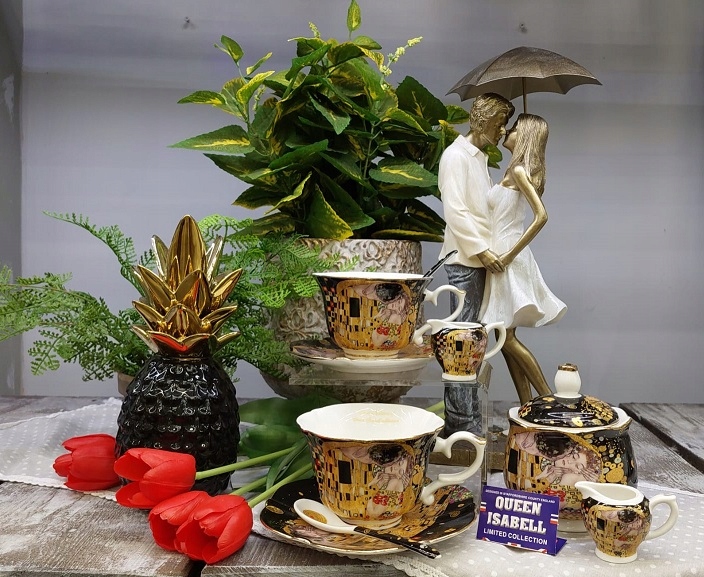 НАБОР ВЫСОКОКАЧЕСТВЕННОГО ФАРФОРА НА ДВОИХ ОТ БРЕНДА QUEEN ISABELL / серия Gustav Klimt.