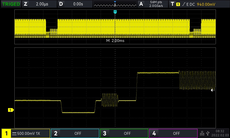 - Регулировка чувствительности по напряжению: 500 мкс/дел – 20 В/дел.