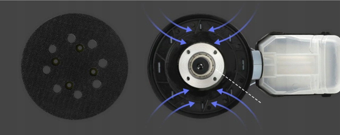 Для лучшего удаления пыли устройство использует наждачную бумагу с отверстиями, что является гораздо лучшим решением, чем просто удаление краев.