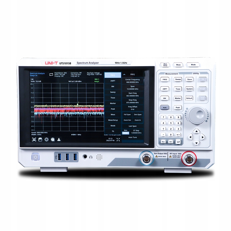 Uni-T UTS1032T — усовершенствованный анализатор спектра, продукт известного производителя Uni-T. Это точное устройство позволяет исследовать и анализировать сигналы в широком диапазоне частот, предоставляя исчерпывающую информацию о спектре. Анализатор предлагает широкий диапазон частот от 9 кГц до 3,2 ГГц, что позволяет эффективно тестировать сигналы в различных средах. Благодаря регулируемому диапазону разрешения полосы пропускания от 1 Гц до 1 МГц пользователь может точно адаптировать анализ к конкретным требованиям измерений. Низкий фазовый шум -98 дБн/Гц гарантирует, что анализатор обеспечивает четкие и точные результаты измерений. Впечатляющий уровень DANL -161 дБм позволяет обнаруживать даже очень слабые сигналы, что делает анализатор подходящим для приложений, чувствительных к низким уровням сигнала. Наличие следящего генератора позволяет точно определять параметры сигнала и отслеживать изменения в режиме реального времени. Анализатор оснащен большим 10,1-дюймовым TFT ЖК-дисплеем с разрешением 1280 x 800 HD, который поддерживает жесты сенсорного экрана, обеспечивая интуитивно понятное управление. Расширенные функции измерения, включая 10001 точку сканирования, минимальное разрешение полосы пропускания 1 Гц и точное считывание частоты (начало, остановка, середина, маркер), делают анализатор универсальным и гибким в использовании.