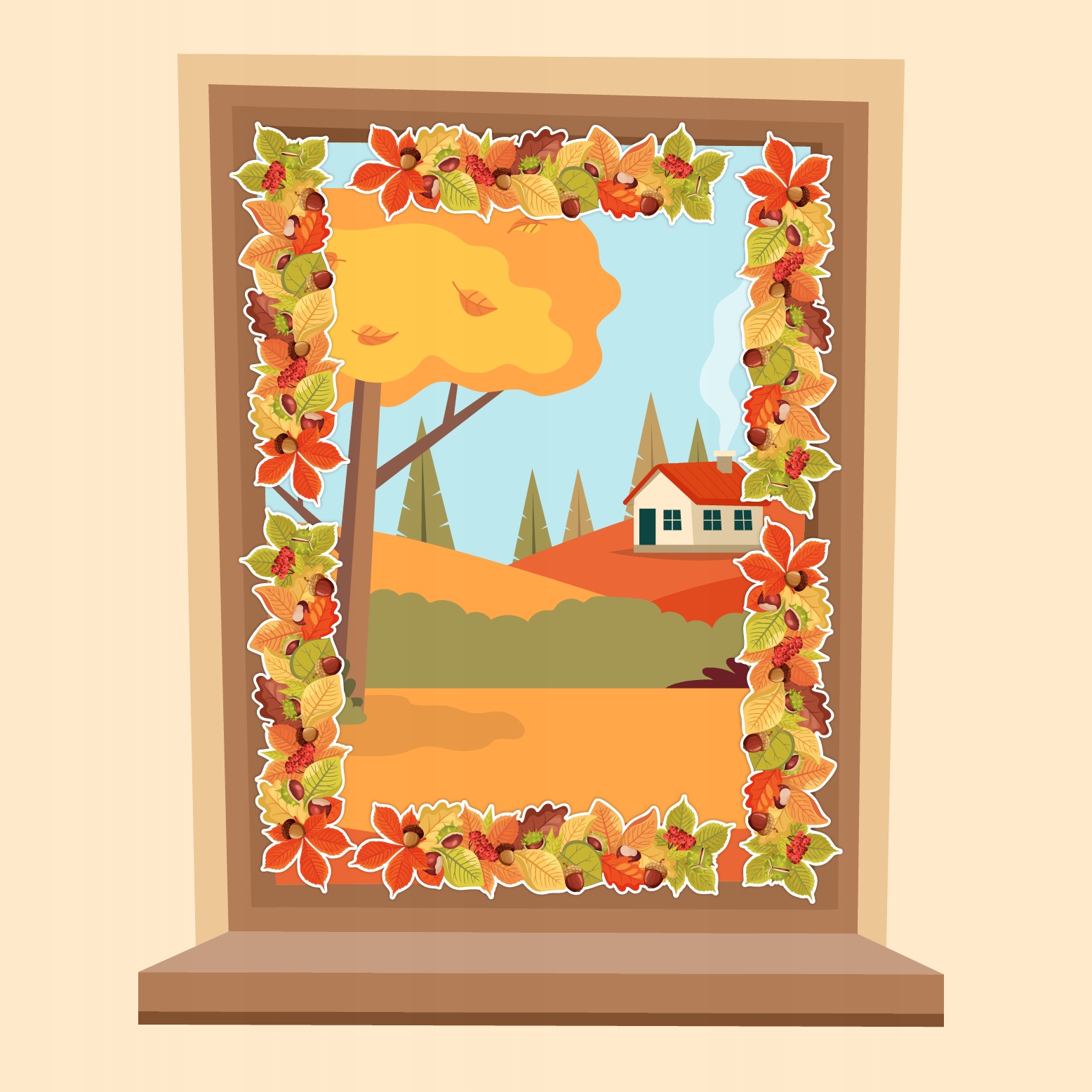 ОСЕННИЕ УКРАШЕНИЯ - ОКОННАЯ РАМА - ОСЕНЬ - ДВУХСТОРОННИЕ