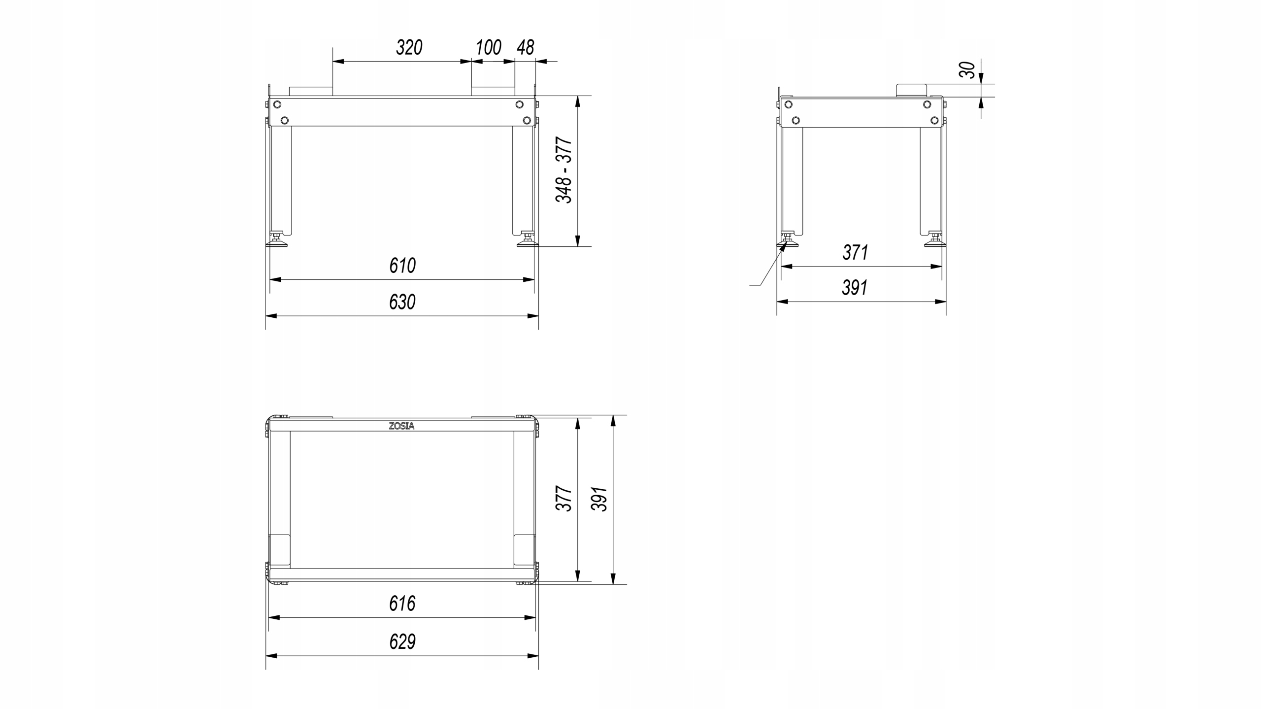 Основание топки ZOSIA ECO 12 обеспечивает устойчивое позиционирование каминной топки, высоту ножек можно регулировать.