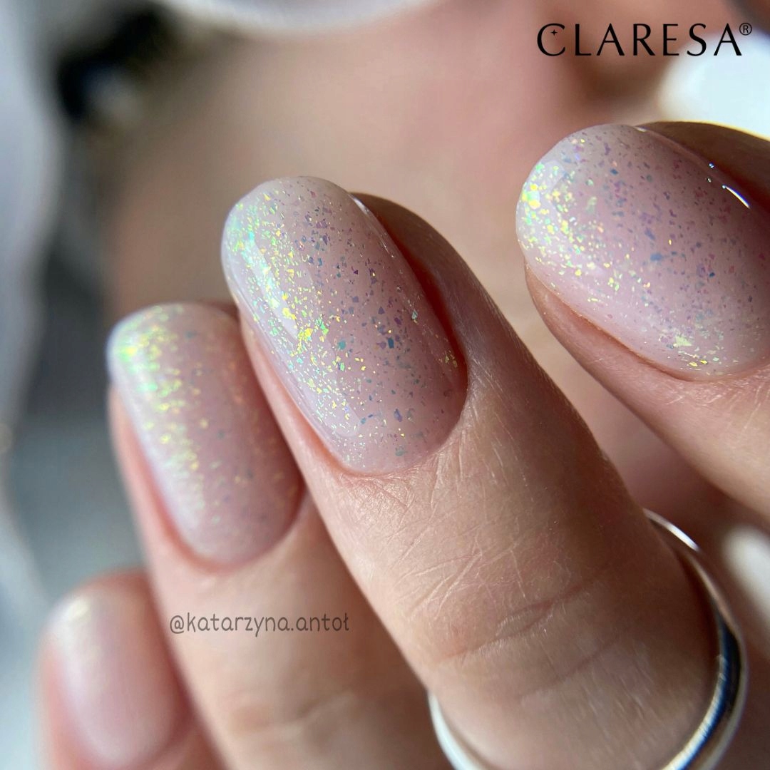 ⭐Гибридная основа для ногтей Claresa POWER 20, молочная основа с кусочками опалесцирующей фольги, наращивающая база⭐