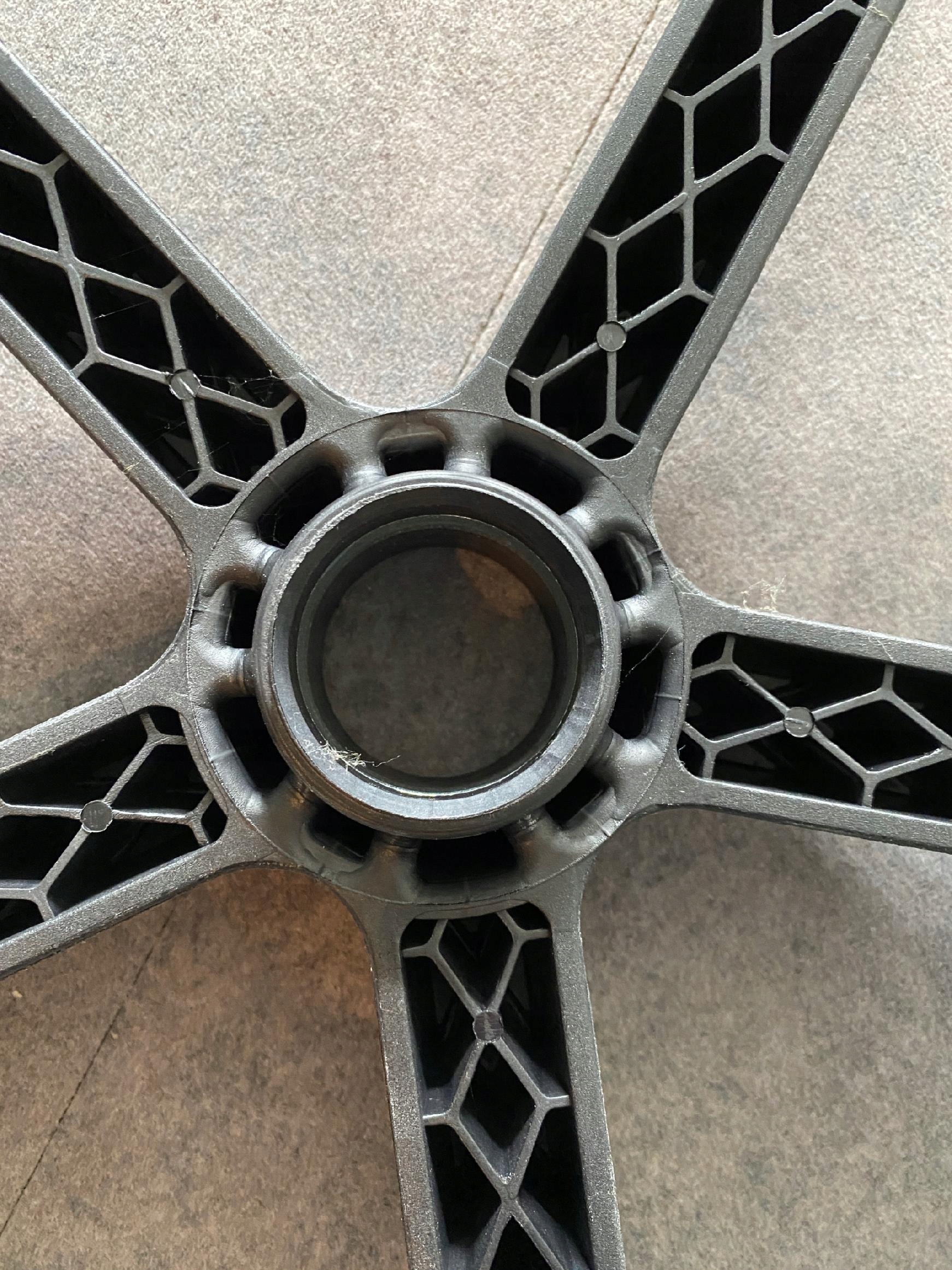 Самые популярные и дешевые основы на рынке — пластик, полиамид, нейлон и т. д. К сожалению, они часто не выдерживают веса и просто ломаются. Обычно они не имеют диаметра более 64 см, потому что чем больше диаметр основания, тем легче его сломать. При этом они почти всегда не имеют дополнительной выемки в рукоятке, из-за чего чаще всего из них выпадают колеса. Колесо имеет дополнительную пружину в штыре, который мы вставляем в основание, чтобы «закрепить его внутри основания. Обычные основания не имеют этого паза или сужения и колесо фиксируется только в отверстии — у меня таких оснований нет li>Полиамидные основы с добавлением стекловолокна, например: TS 02, TS06, TS25, PFN031 с добавлением стекловолокна, качественно сопоставимы со стальными основами ST 16 new и: ST02, PFS122. .Основы Стальные основания ST16New, ST02, PFS122 технически сравнимы с основаниями из стекловолокна, но часто считаются более прочными, потому что… сталь. Самая прочная стальная основа — это основа ST16New — она сделана из более качественной стали. .Основы изготовлены из алюминия ST 04/660, ST 04/700, PFA219, PFA215, PFA220, PFA230, включая ES 700 - основание с дополнительными накладками, защищающими от царапин, и конструкцией, предотвращающей ножки. от скольжения (если мы любим ставить ноги на крестовину).