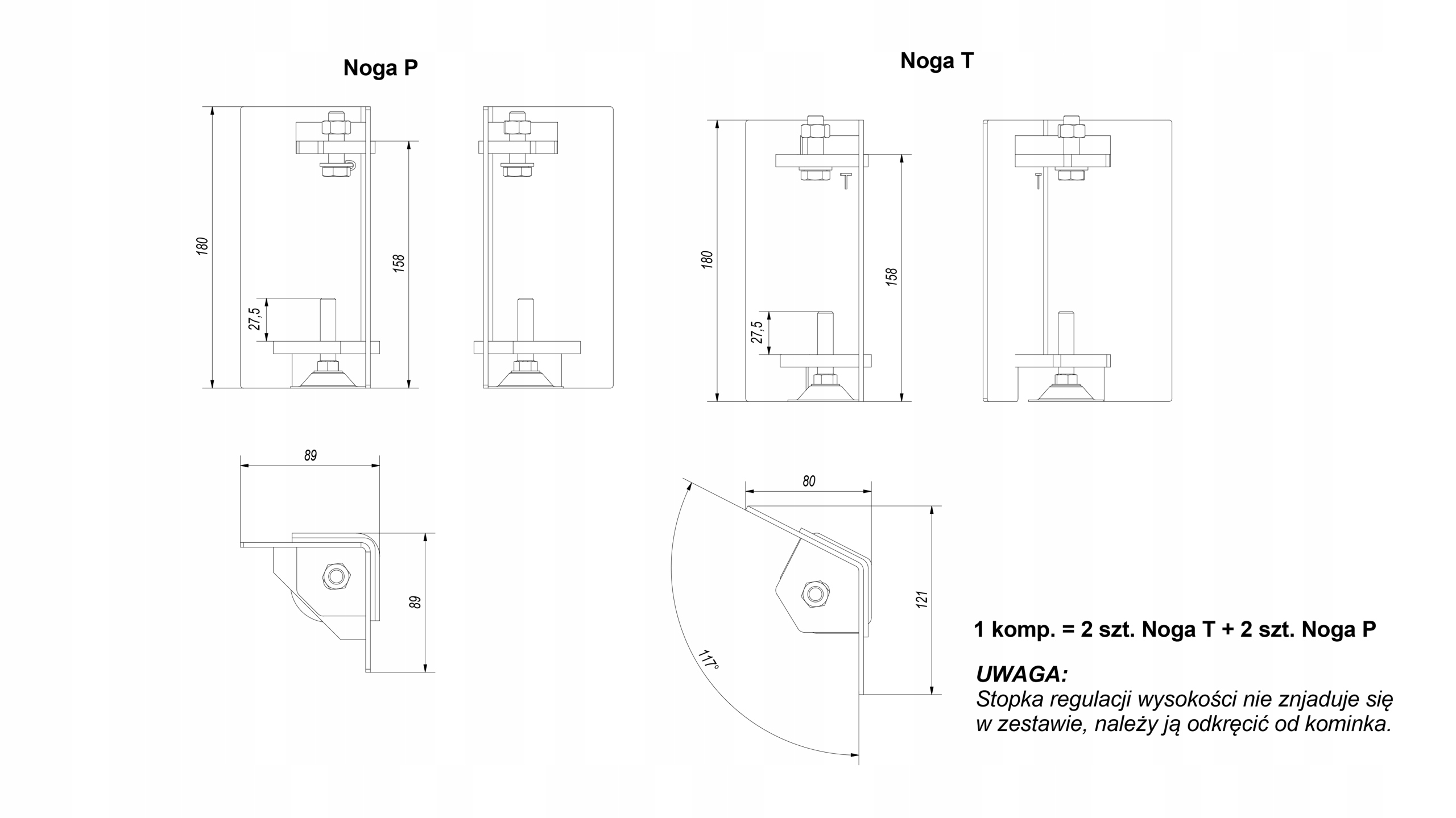 ВНИМАНИЕ! Ножка для регулировки высоты в комплект не входит, ее необходимо отвинтить от камина.
