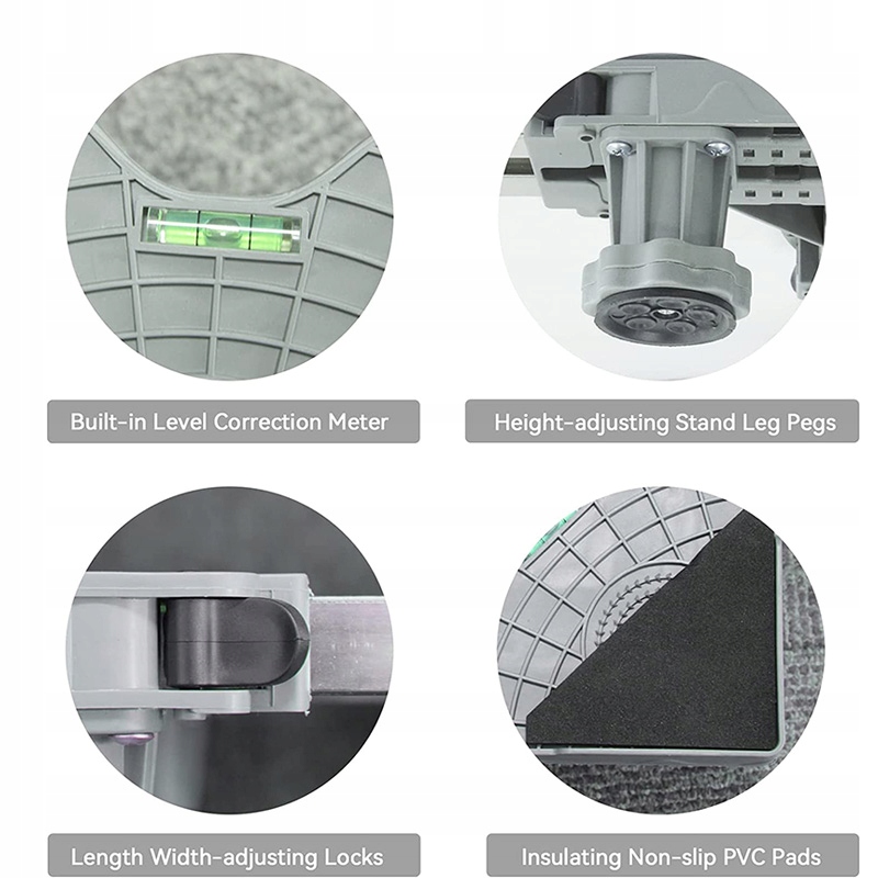 - Регулируемая высота: подставка регулируется по высоте, что позволяет адаптировать ее к стиральным машинам, холодильникам и другим размерам. другие устройства. Вы можете легко отрегулировать высоту, чтобы обеспечить устойчивую поддержку вашего устройства.