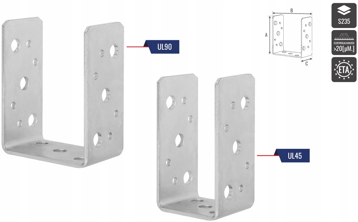 Основы типа полюса «U» облегчают и ускоряют установку деревянных колонн в бетонную подложку с винтами или бетонными якорями. Доступно во многих размерах, подходящих для ширины закрепленных колонн. Электролитическое покрытие цинка с толщиной мин. 20um идеально защищает от коррозии.