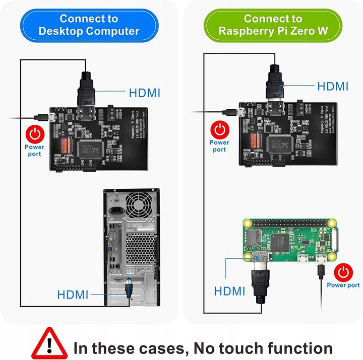 - Сенсорная функция: работает только в том случае, если экран подключен непосредственно к контактам GPIO на плате Raspberry Pi. Если он питает экран и подключает экран к плате Raspbbery через кабель HDMI, сенсорная функция НЕТ!