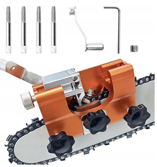Точилка крепится к цепи с помощью регулируемых винтов. Он совместим с большинством бензопил длиной от 8 до 20 дюймов, доступных на рынке.
