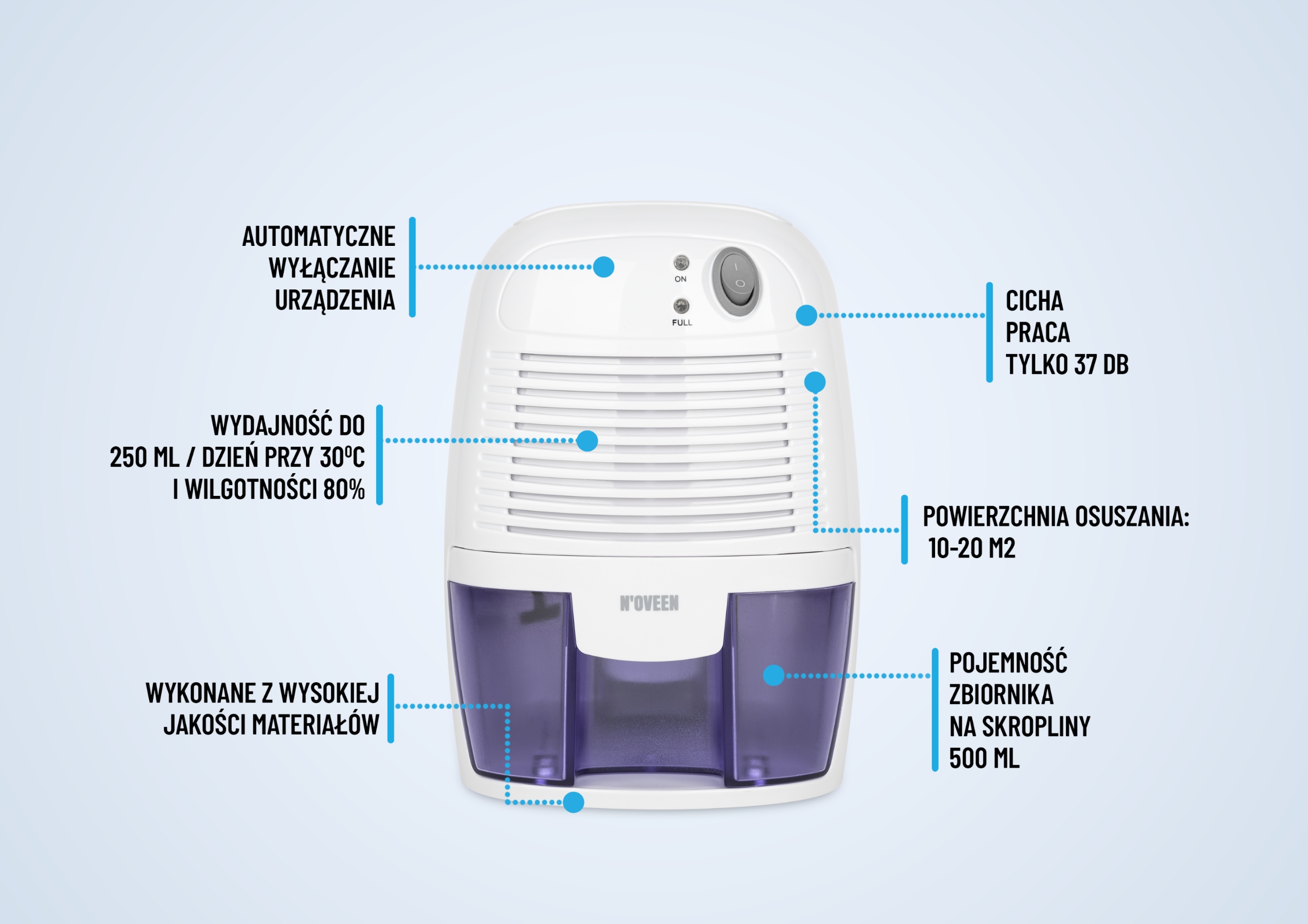 Поглотитель влаги NOVEEN DH300 помогает контролировать и предотвращать слишком высокую влажность в помещении.