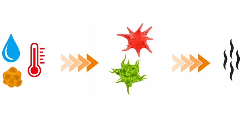 Во время тренировки пот впитывается в спортивное снаряжение, что в сочетании с высокой температурой, шелушащимся эпидермисом и внешними загрязнителями представляет собой идеальную среду для плесени и грибков. процветают.