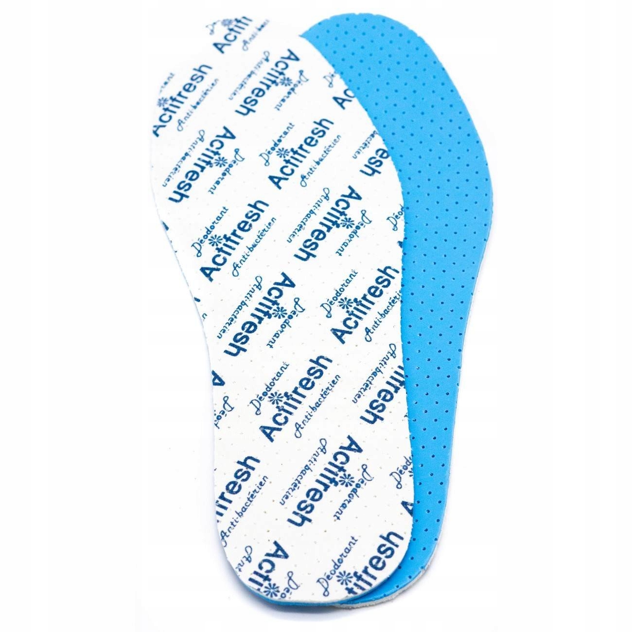 Actifresh – удобные и гигиеничные вставки, дарящие ощущение свежести. Слой латексной пены обеспечивает отличную амортизацию, обеспечивая комфорт при ходьбе, а бактерицидный агент Actifresh защищает наши ноги от плесени, дрожжей, водорослей и бактерий. Нежная ткань и перфорация стельки обеспечивают отличную циркуляцию воздуха, усиливая ощущение свежести ног. Они предназначены для всех типов обуви. Можно стирать вручную при температуре 30°C.