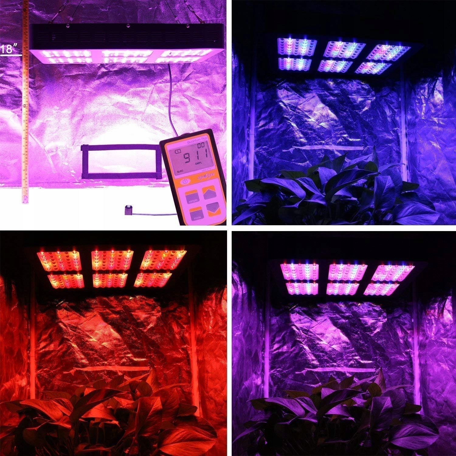 даже при потребляемой мощности всего 360 Вт. Идеально подходит для зоны выращивания размером 121 x 106 см (4 x 3,5 фута), когда светодиод висит на высоте 61 см (24 дюйма). Максимальная освещенность: 151 x 121 см (5 x 4 фута).