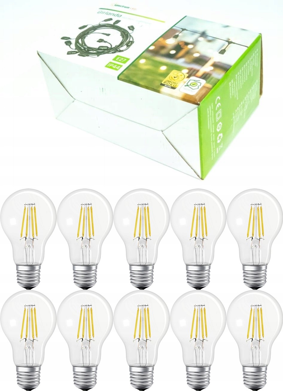 Высококачественная гирлянда со сменной лампочкой Е27, подходящая для использования в помещении и на улице. Благодаря классу IP 44 (защита от брызг воды) световую цепь можно использовать в таких местах, как домашний сад или терраса. Гирлянда универсальна благодаря сменным лампочкам, которые можно адаптировать к ситуации (например, романтический ужин при мягком свете; сильное освещение беседки). Комплект оснащен резиновым шнуром питания и вилкой (IP44), устойчивой к внешним факторам. Гирлянда подходит как для светодиодных, так и для традиционных лампочек.
