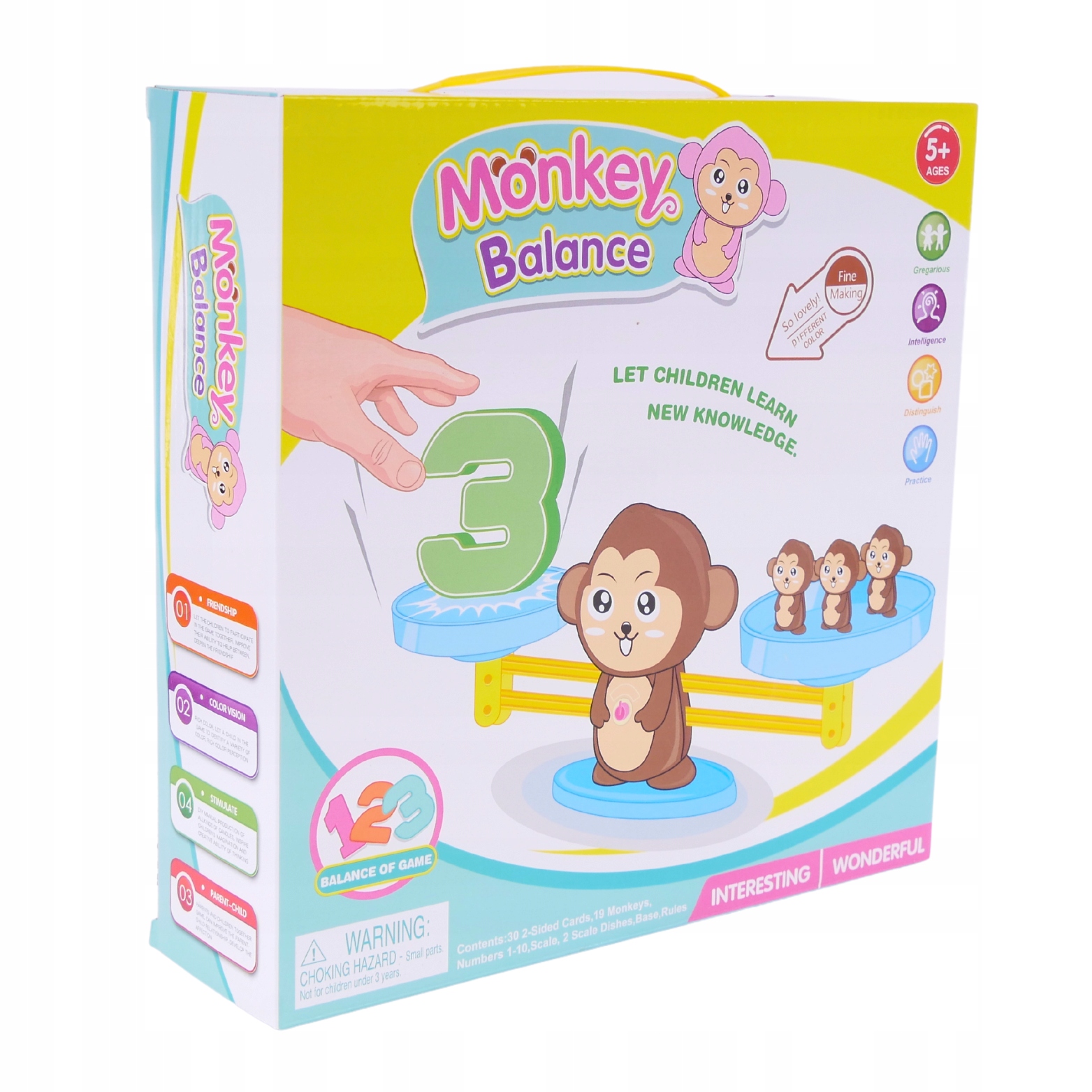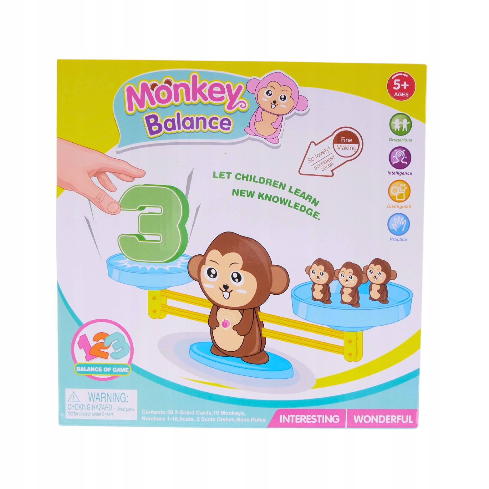 Дизайн: Чтобы разнообразить и побудить детей к обучению, в наборе использован мотив милой обезьянки. Большая обезьянка служит весами, а крошечные фигурки учат детей считать и работать с весами, что помогает развивать детские навыки. Благодаря визуально привлекательному внешнему виду игра станет не только познавательным развлечением, но и большим развлечением.