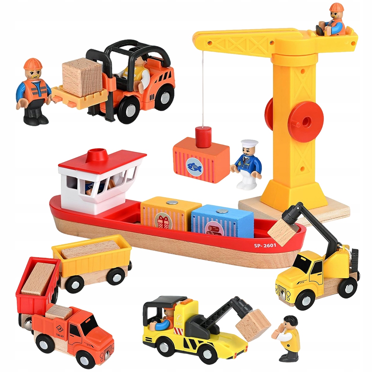 🌈【Игрушка для ролевых игр: строительная площадка】Включает в себя несколько фигурок, таких как капитан, рабочий и водитель. Дети могут создавать свои собственные истории о гавани и развивать социальные навыки.