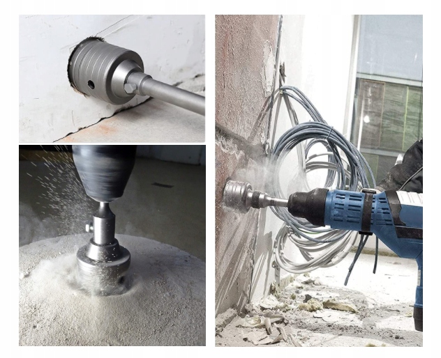 Каждая фреза имеет удлинитель, позволяющий устанавливать ее как в патрон SDS+, так и в стандартную зажимную головку любого сверла. Кольцевые пилы имеют зубчатый обод из твердого сплава HM.