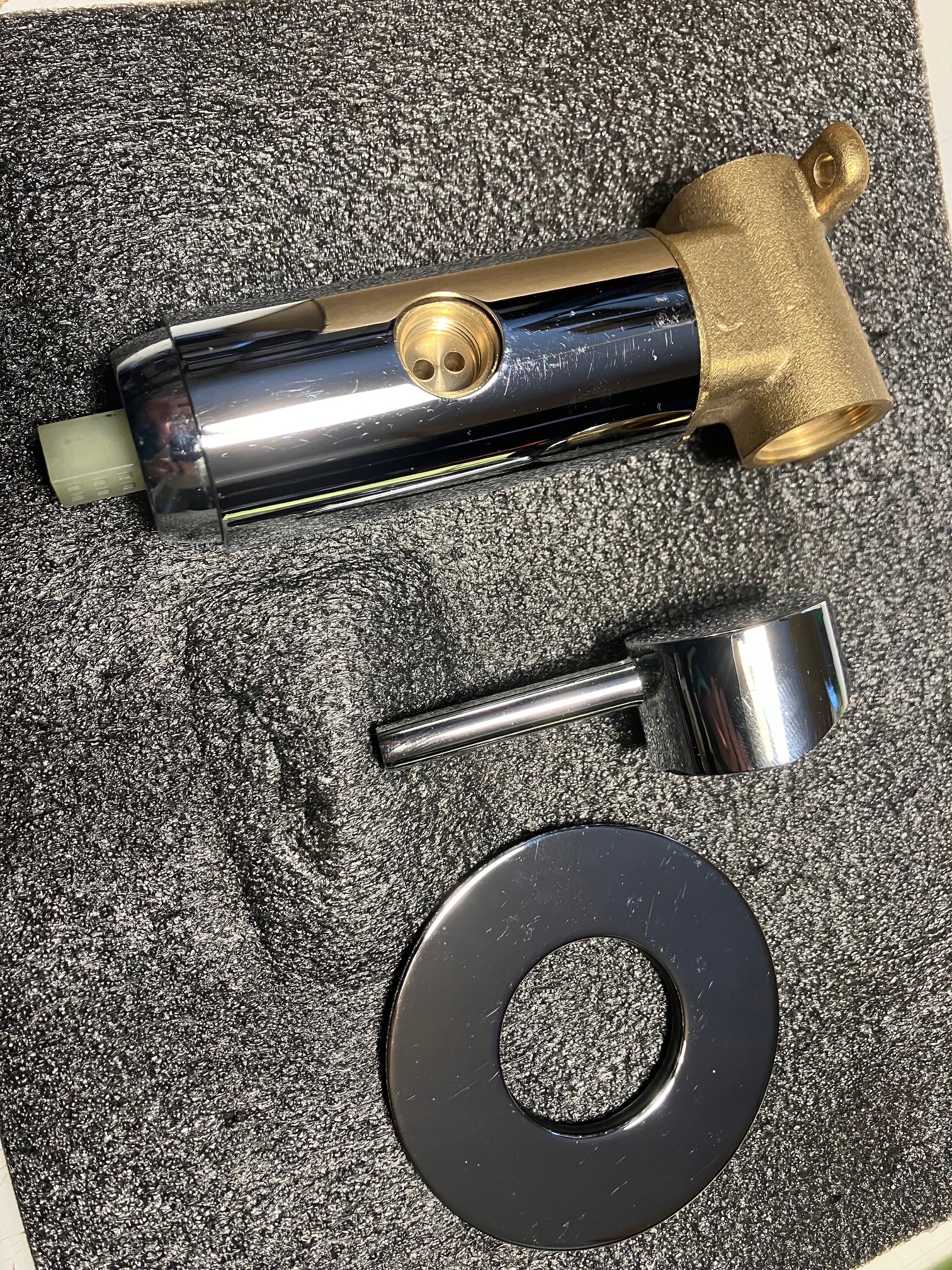 Компактный комплект скрытого монтажа со смесителем холодной/горячей воды и встроенным держателем ручки. Подходы 2x1/2".