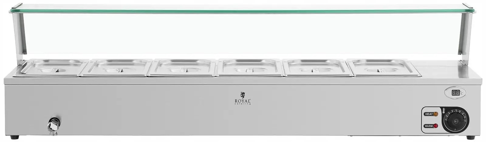 ВЫВОД Bain Marie 2100Вт 6 контейнеров GN 1/3 сливной кран ROYAL CATERING RCBM-11