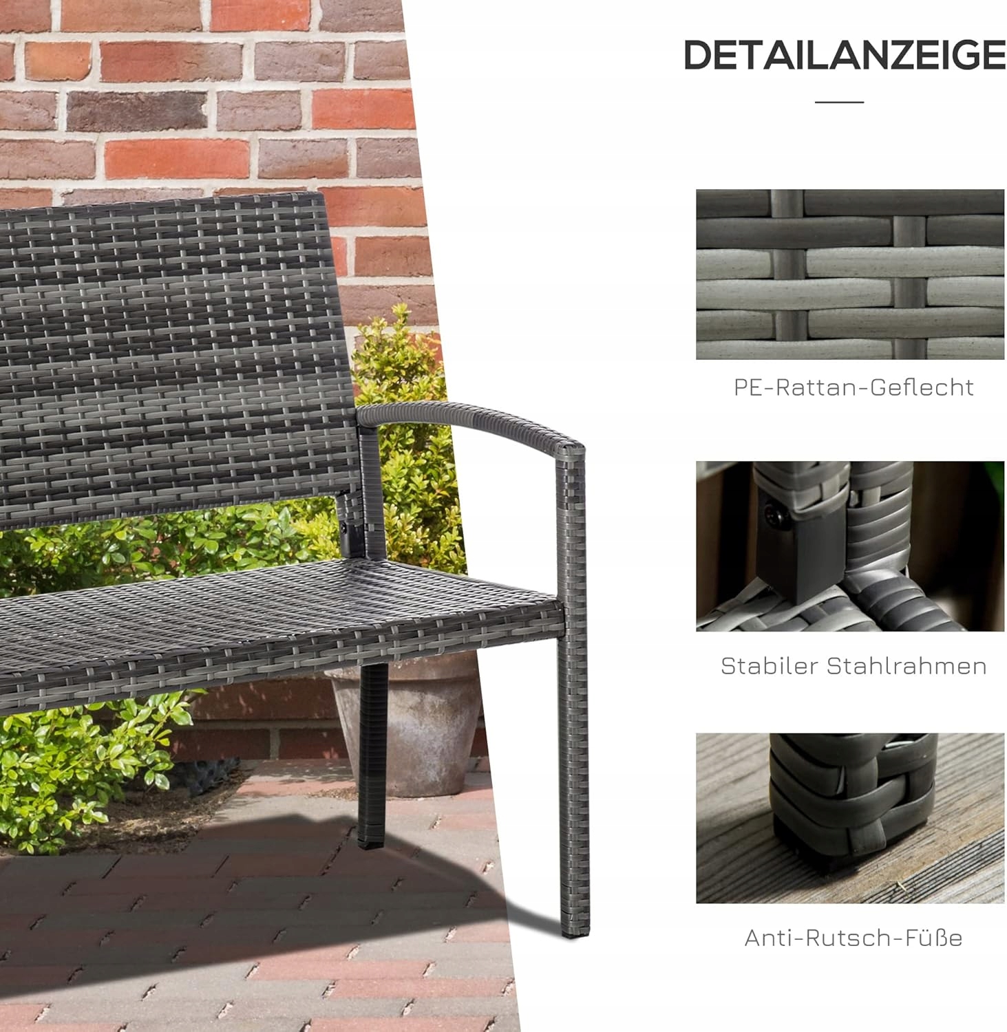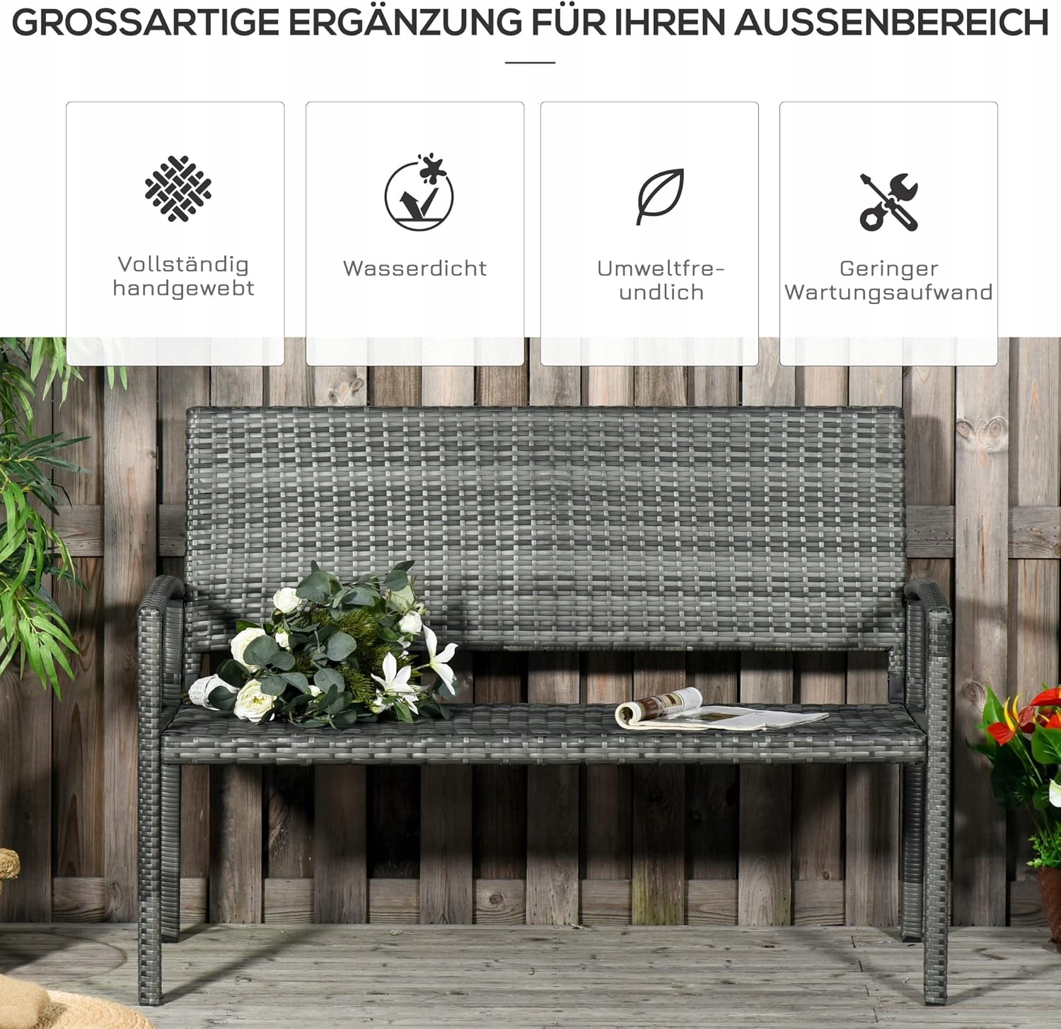 Outsunny Ławka ogrodowa 2-osobowa rattan ławka parkowa do 320 kg