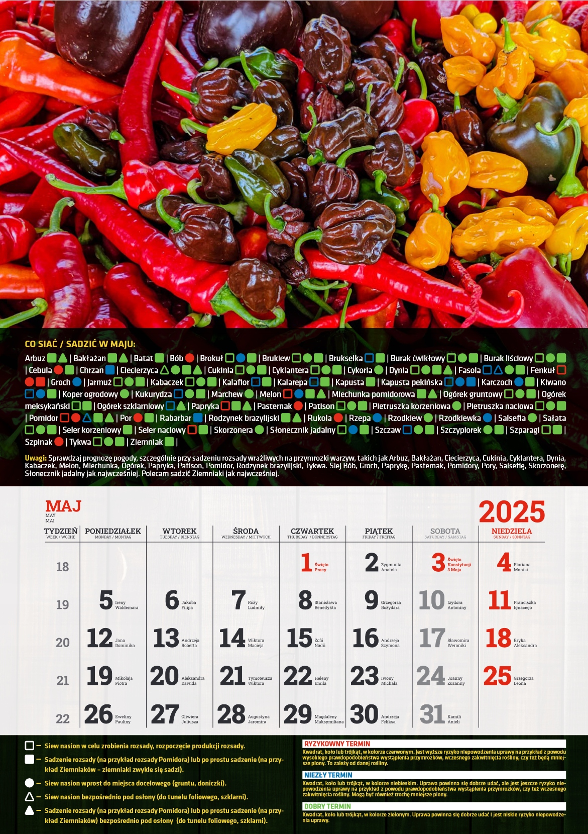 Овочевий календар 2025 - Настінний садівничий календар A3 infouprawa