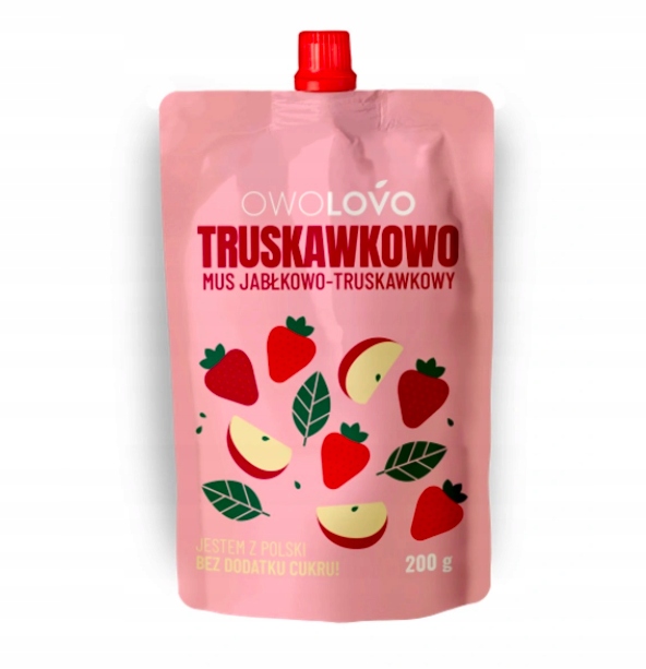 OWOLOVO Яблочно-вишневый мусс Откройте для себя необыкновенное сочетание вкусов. Сладкий сорт вишни с восхитительным яблоком вас приятно удивит. Выбирайте 100% польские фрукты! Пастеризованный продукт. Без добавления сахара – содержит натуральные сахара.
