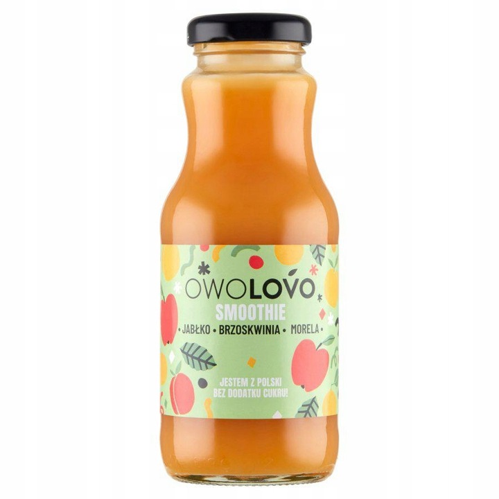 Лучшие польские фрукты специально для вас! Попробуйте сочетание восхитительных яблок, персика и абрикоса в освежающем смузи OWOLOVO.
