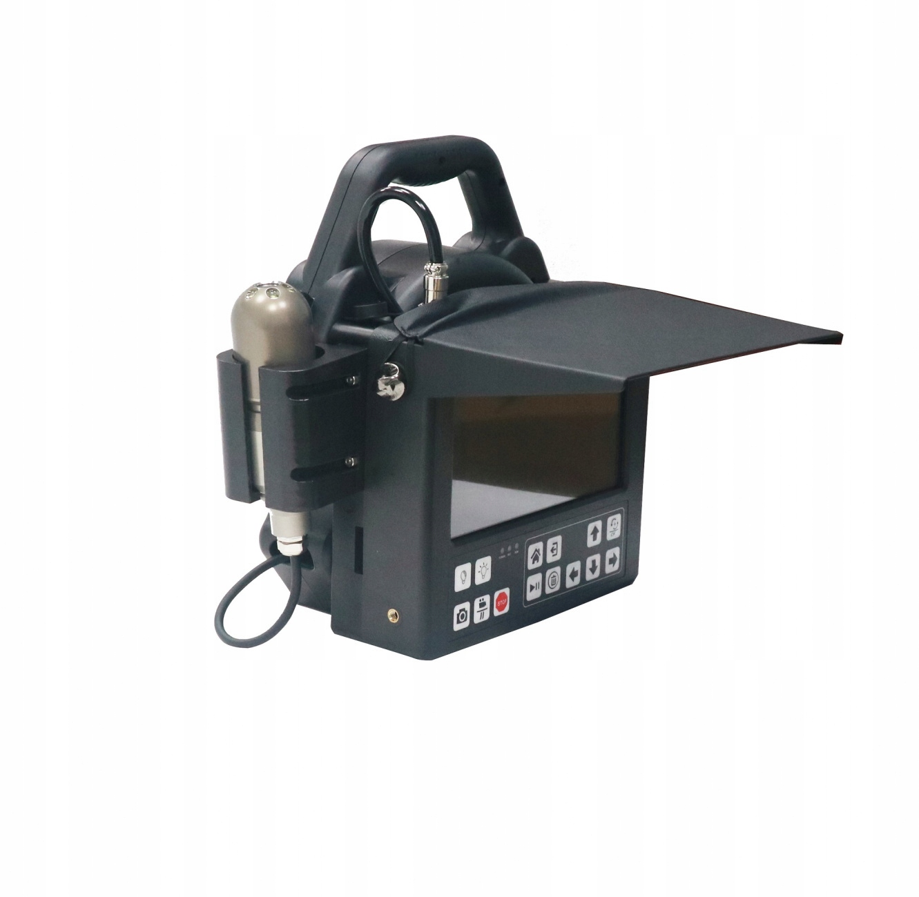 Блок управления OXE CHIMCAM PROFI 360 защищен от атмосферных воздействий и оснащен солнцезащитным козырьком, что обеспечивает надежную работу даже в неблагоприятных погодных условиях. Монитор представляет собой 8-дюймовый цветной ЖК-дисплей HD IPS, обеспечивающий четкое и четкое изображение во время проверок. Предустановленные функции включают запись видео и изображений непосредственно на USB-накопитель, микрофон для записи звука и перезаряжаемую батарею для максимальной портативности (время работы примерно 4–5 часов).