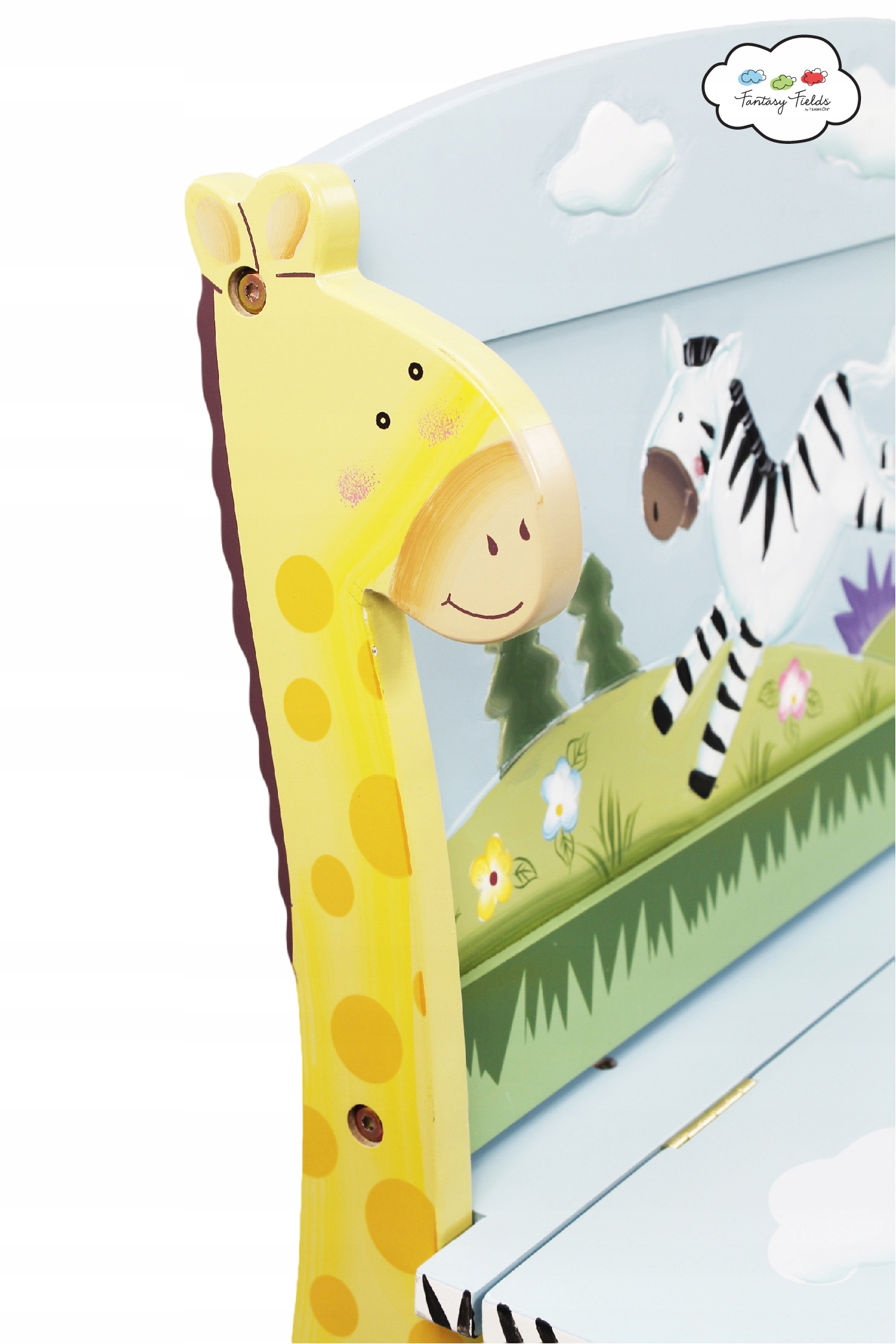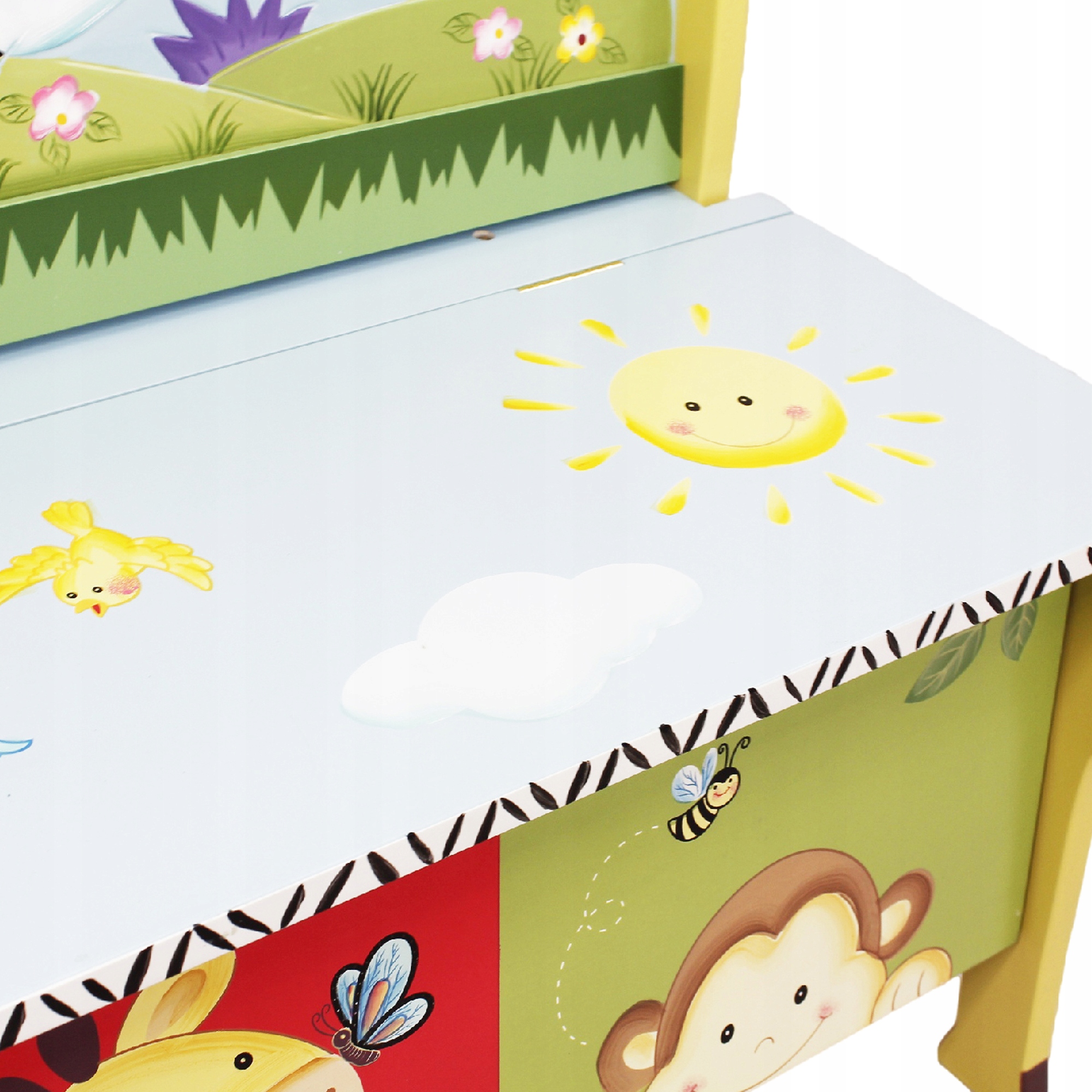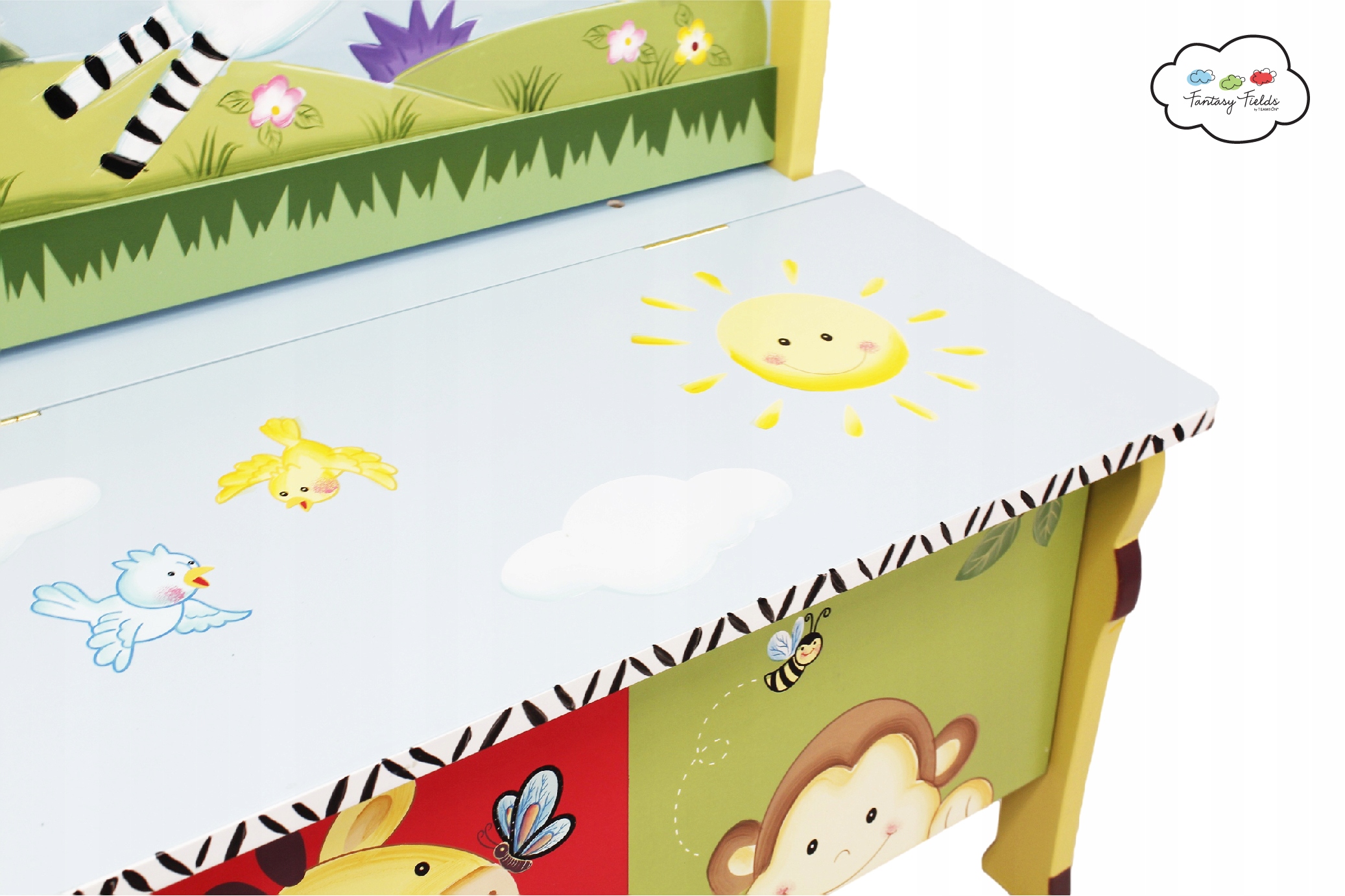 Серия Sunny Safari была разработана для всех любителей диких животных и приключений. Вы найдете здесь много элементов, король волшебным образом превратит детскую комнату в солнечную саванну. Скамья может быть помещена перед столом или просто свободно. Это будет место отдыха или чтение сказки. Важно отметить, что верхняя часть открыта и создает место для хранения для необходимых предметов. Все красиво отделано и украшено множеством деталей.