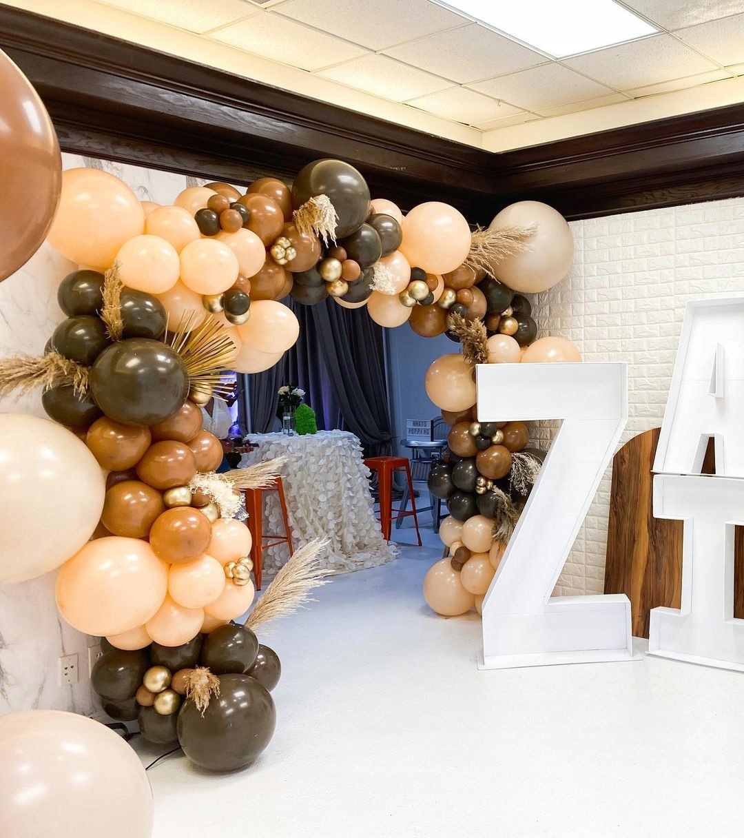Набор воздушных шаров в оттенках персика, кофейного коричневого и металлического золота