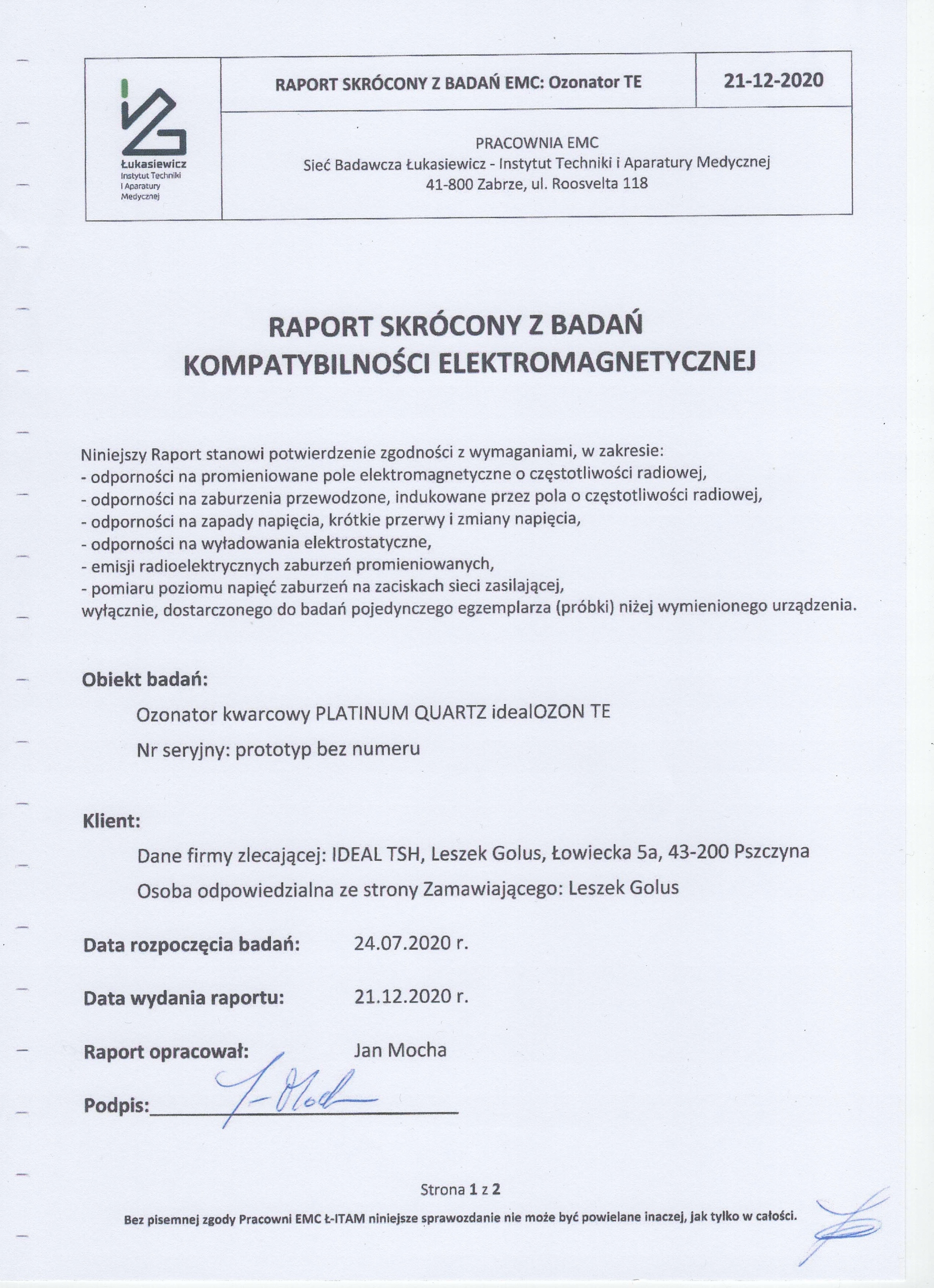 - продукт протестирован в Институте медицинских технологий и оборудования ИТАМ Забже