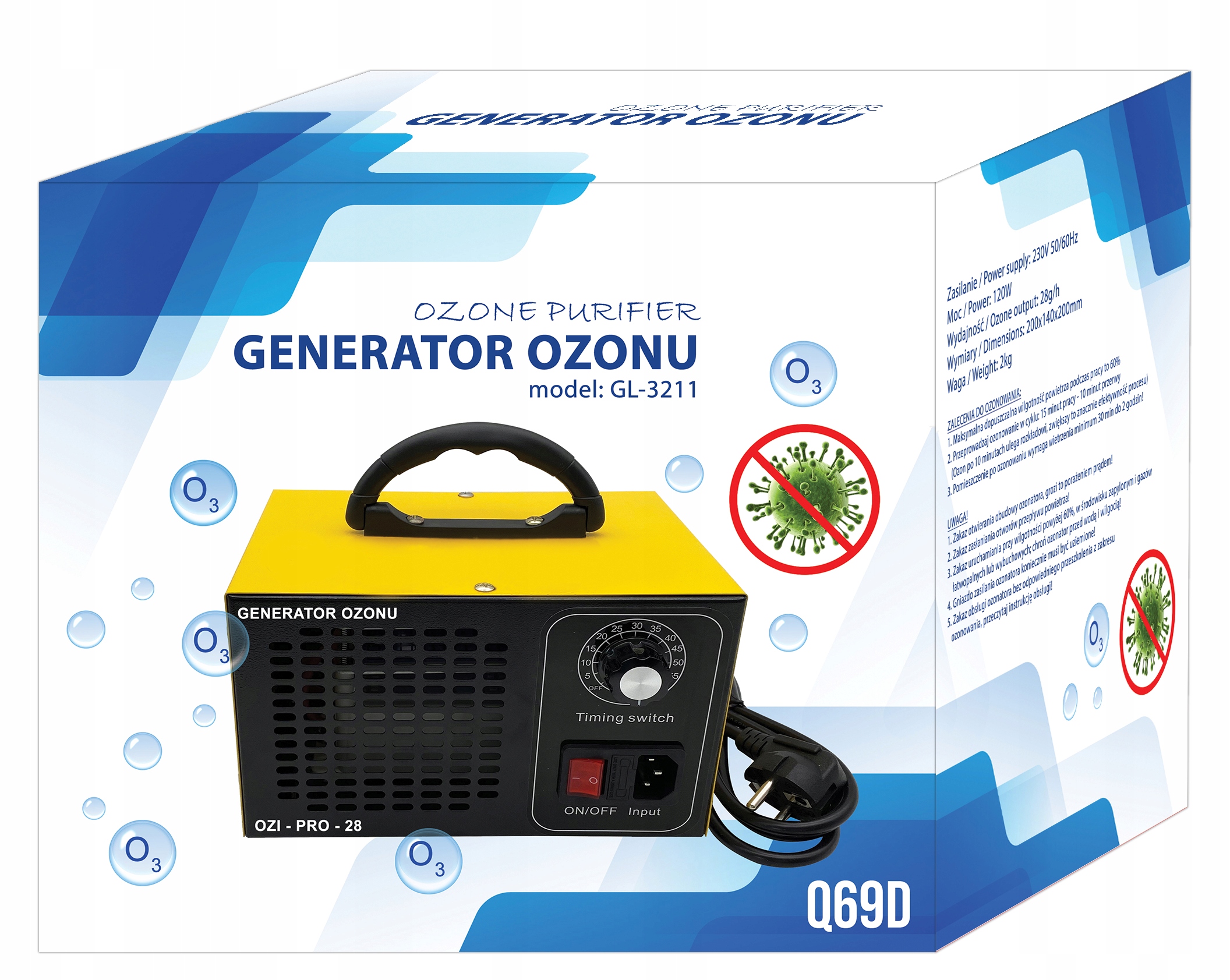 Обладая способностью генерировать озон на уровне 28 г/ч, он идеально подходит для дезинфекции воздуха и поверхностей в жилых помещениях, офисах, транспортных средствах и складах.