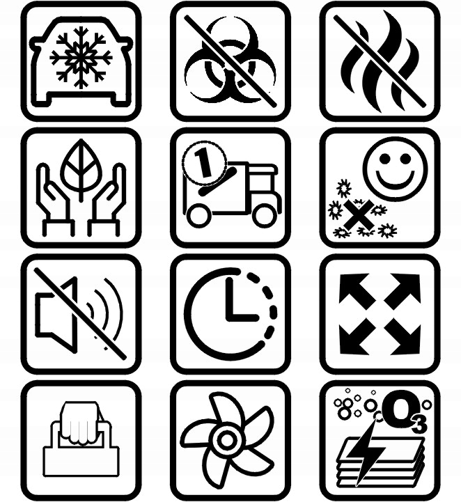 - альтернатива хлорсодержащим средствам – устранение вредного воздействия аллергенов; микроорганизмы, грибки, плесень, бактерии и клещи из помещений и салона автомобиля