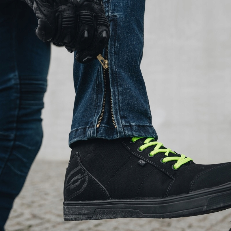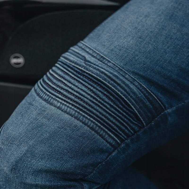 Джинсы мотоциклетных джинсов Hornet имеют съемные защитники колена CE Уровень 2. Форманы на бедрах позволяют добавлять защитники. Гибкие вставки над коленями дают свободу передвижения. Длинные замки позволяют легко вставлять и снимать штаны. Брюки сшиты в тонком разрезе