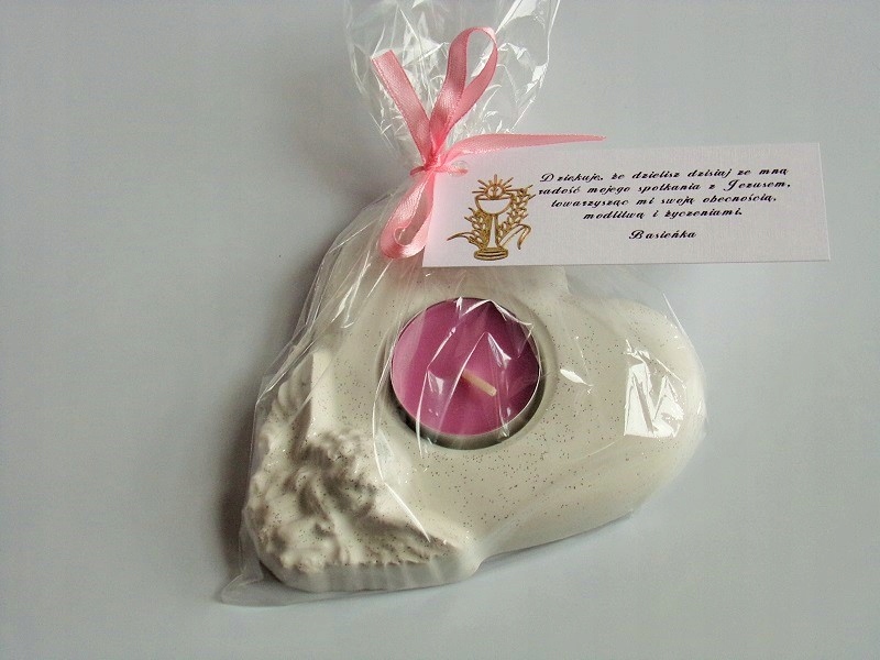1 благодарственное письмо – одно гипсовое украшение, упакованное в целлофановый пакет, перевязанный атласной лентой, с прикрепленной благодарственной карточкой. чайная свеча.