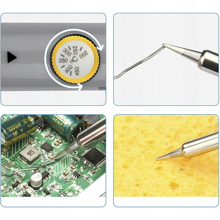 до 15 элементов в наборе, который состоит из олова, заменяемых пещер, пинцоров и многих Другое приложение для широкого приложения идеально подходит для пайки всех видов компонентов, с низким и средним. B> от 200 до 450 ° C, высокая мощность вызывает быстрое нагревание. Это позволяет начать работать быстрее. Сплошная конструкция и скважина конструкция обеспечивает высокий комфорт работы