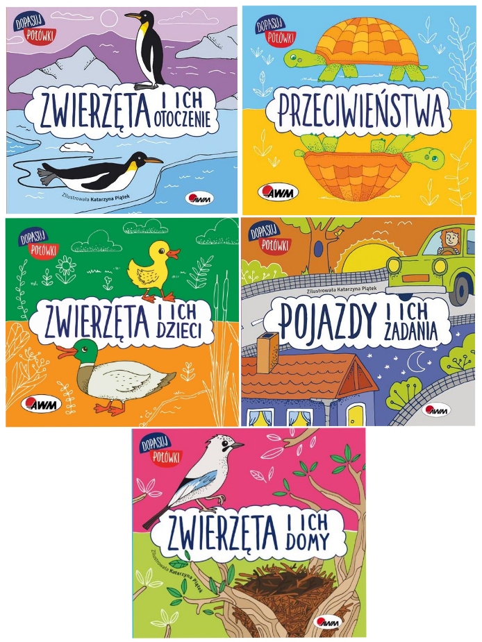 Серия «СООТВЕТСТВИЕ ПОЛОВИНЫ» состоит из книг, страницы которых обрезаны, что позволяет сопоставлять верхнюю половину страницы с нижней половиной и наоборот. Благодаря этому ребенок активно обнаруживает, что что подходит, а что нет. Таким нетрадиционным способом малыш познает мир. Красивые, простые иллюстрации и веселые стишки побуждают его к игре.