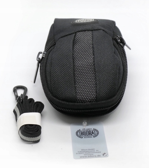 В комплект входит ремень для подвешивания чехла на плечо или шею. Чехол закрывается на молнию.