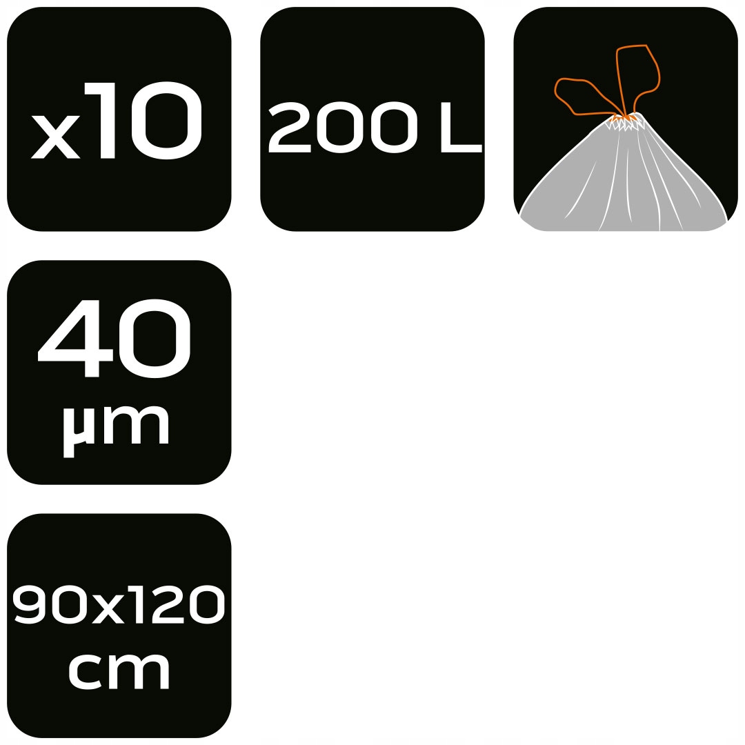 Мешки для мусора 200 л, зеленые с лентой, 40 мк, 10 шт. 15-992 от NEO Tools - это мешки емкостью 200 л, предлагаемые в наборе по 10 шт. в рулоне с двойным дном и практичной полипропиленовой (ПП) лентой. Они характеризуются зеленым цветом и толщиной 40 мкм. Они изготовлены из прочного материала LDPE. Их ширина составляет 90 см, а высота – 120 см. Они хорошо подойдут в качестве мешков для травы, листьев, садового мусора, а также для использования в качестве цветов и растений дома или в цветочном магазине. Мешки для мусора NEO Tools – гарантия долговечности.