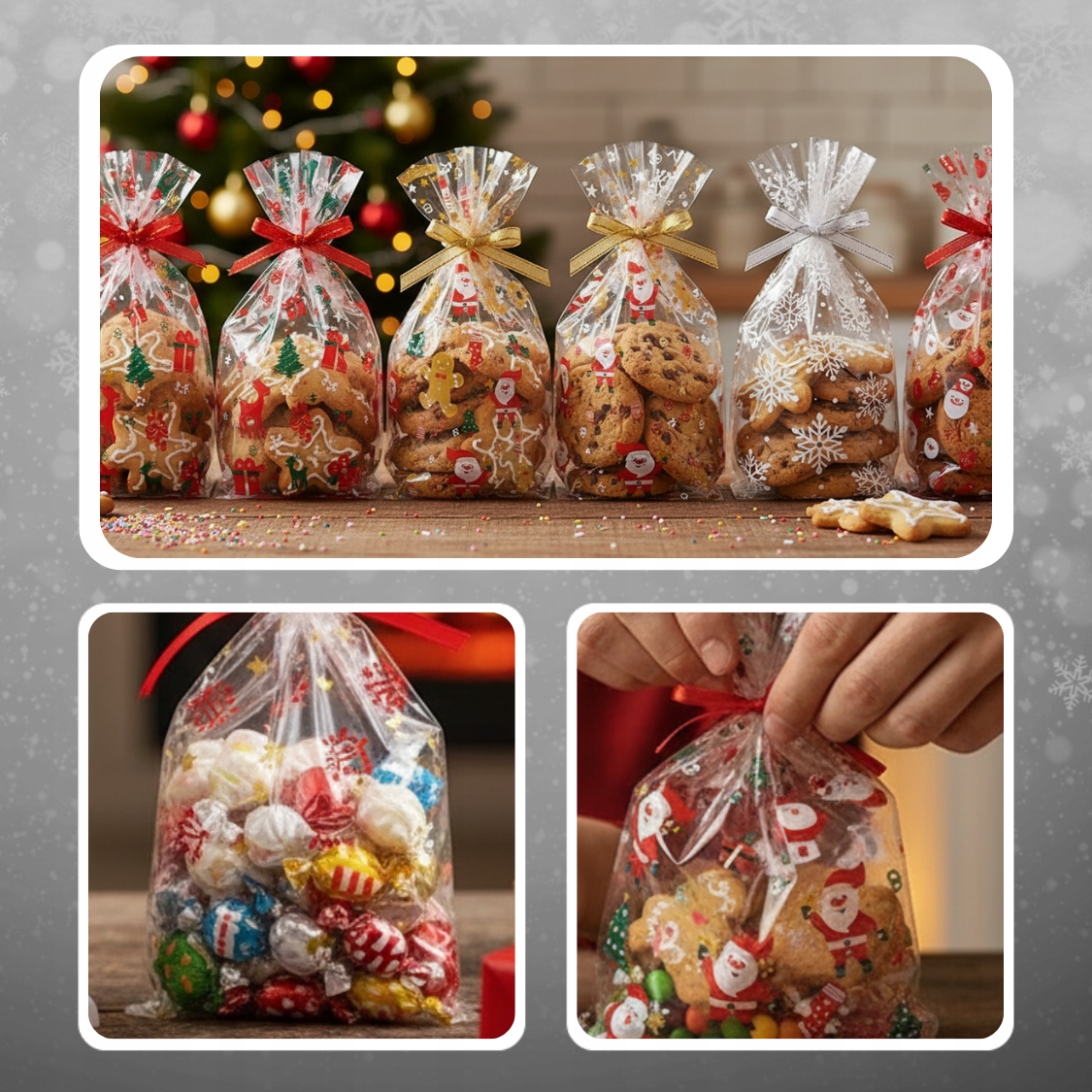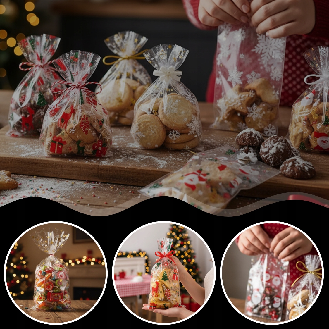 ПАКЕТЫ ИЗ ФОЛЬГИ ПАКЕТЫ ДЛЯ ПЕЧЕНЬЯ 100 ШТ. ДЕКОРАТИВНЫЙ РОЖДЕСТВЕНСКИЙ НАБОР