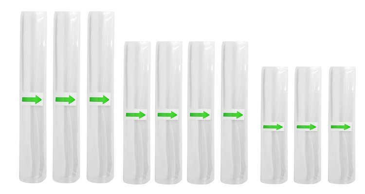 В наборе целых 9 рулонов с фольгой для запечатывания и 5 больших пакетов для вакуумной запечатки в виде десятого рулона!