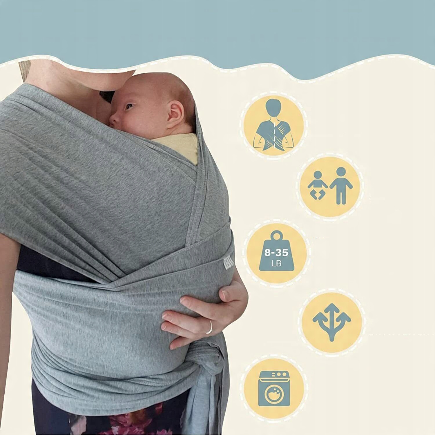🤱🏻 Милый и уютный – изготовлен из мягкого, гибкого и Дышащий материал, слинг обеспечивает ребенку комфорт и безопасность. Его легко надевать, и он достаточно хорошо сидит, поэтому вам не придется постоянно его поправлять. Идеально подходит для мам и пап, впервые рожающих.