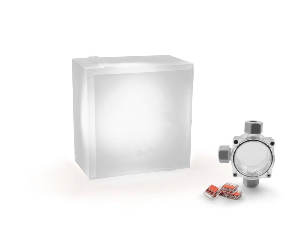 Наше предложение также включает в себя необходимые аксессуары для установки, такие как: Специальная установка кабели (4-жильные для RGB-кубов и 2-жильные для белых кубиков) для прокладки в земле, гермокоробки для устройства ответвлений и соединений в земле.