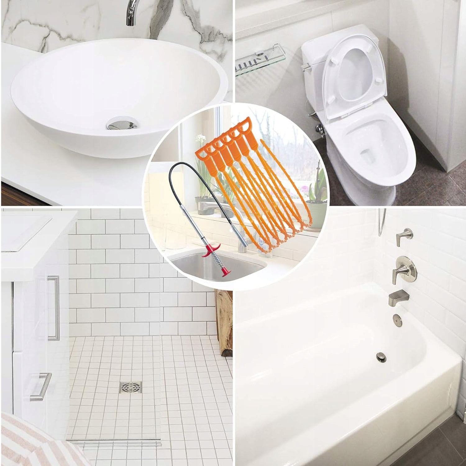 Длина стержня для чистки канализации составляет 25 дюймов, а гибкая металлическая труба обладает хорошей гибкостью и может свободно сгибаться. Это позволяет использовать его во всех узких и труднодоступных углах.