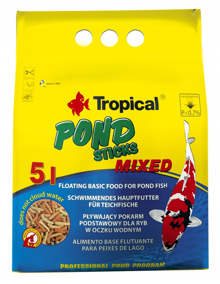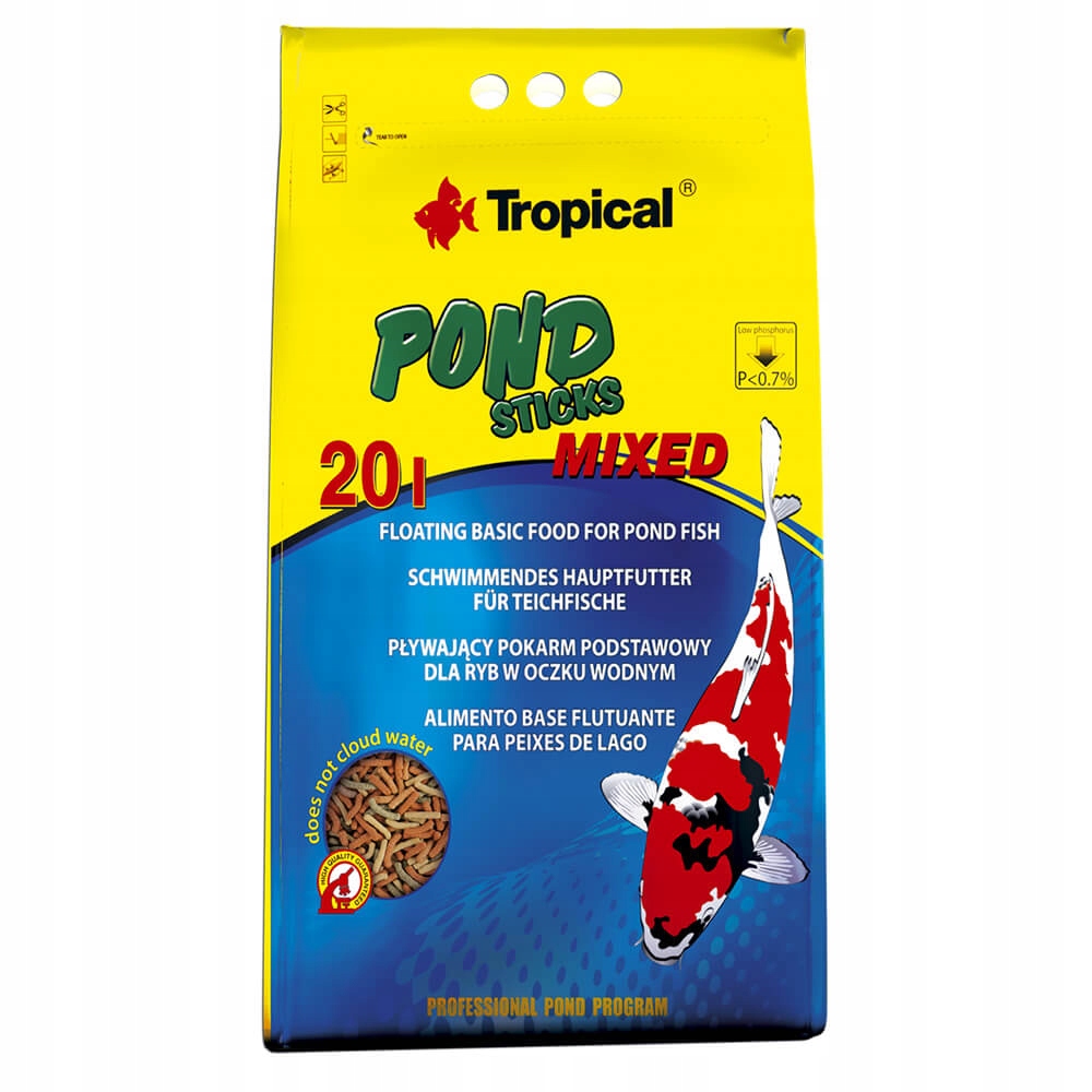 Pond Sticks Mixed — многокомпонентный корм в виде плавающих палочек для кои, золотых рыбок и других декоративных карповых, содержащихся в садовых прудах и прудах. Правильно сбалансированная рецептура, содержащая питательные вещества растительного и животного происхождения, а также комплекс витаминов и микроэлементов, обеспечивает отличное состояние и здоровье рыб. Корм полностью удовлетворяет потребности рыб в питании, усиливая при этом их красный и золотистый цвет. Pond Sticks Mixed также охотно поедают некоторые амфибии и раки, обитающие в прудах. Рыбы, которых регулярно кормят смешанным кормом Pond Sticks, здоровы, полны жизни и красиво окрашены.