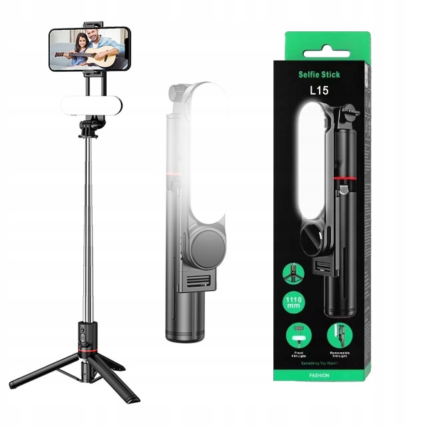 ПАЛКА ДЛЯ СЕЛФИ ШТАТИВ СВЕТОДИОДНАЯ ЛАМПА BLUETOOTH L15 1110 ММ, ЧЕРНАЯ