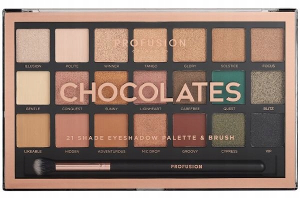 Палитра теней Profusion Eyeshadow Palette, состоящая из 21 оттенка теней и кисточки «Шоколад»