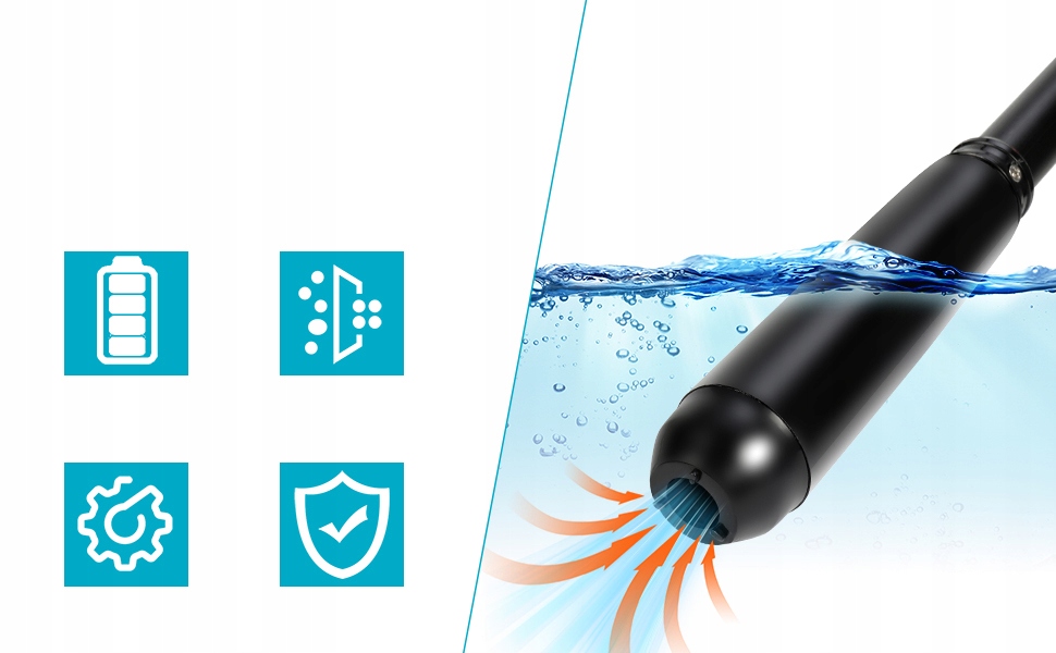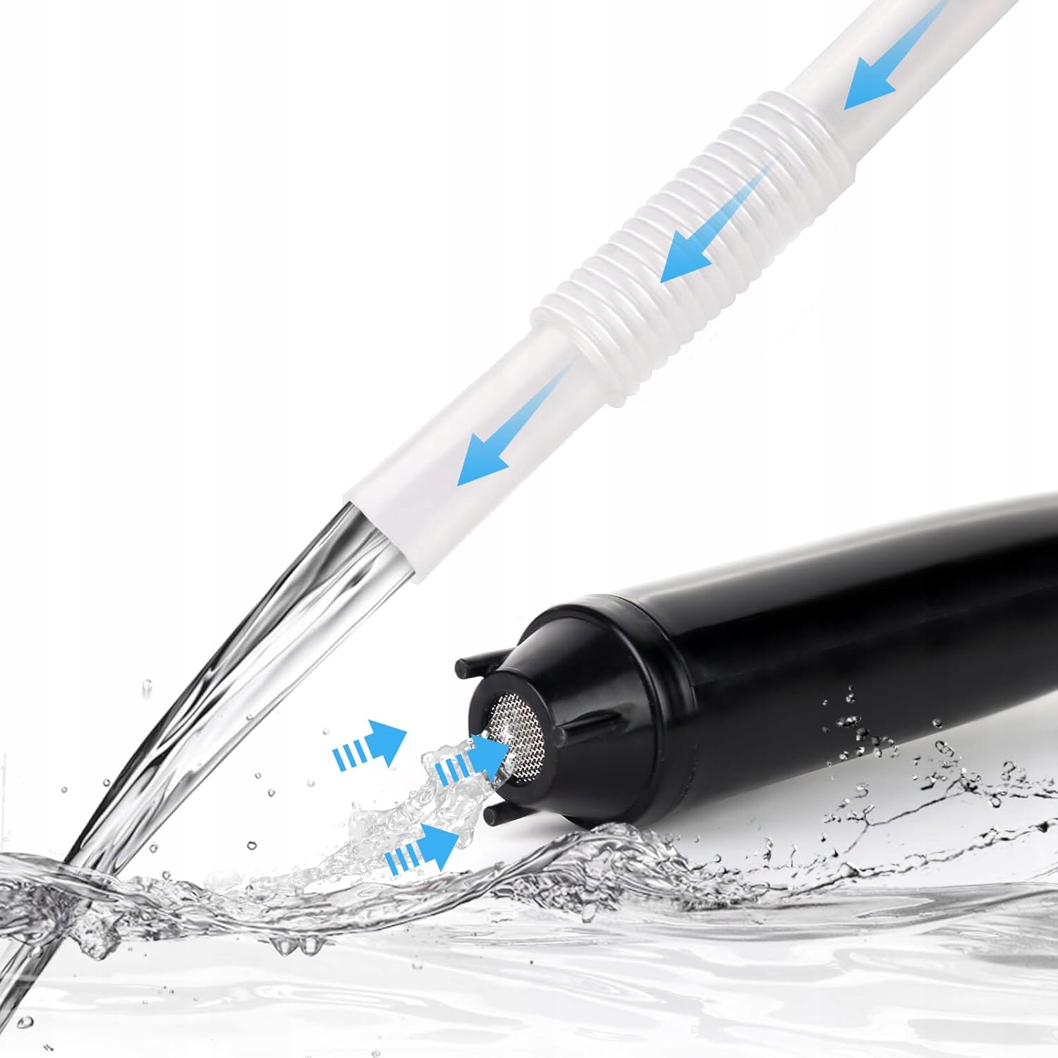 ➡️В нижней части трубки расположена крыльчатка, которая всасывает жидкость, а затем сбрасывает ее через гибкий шланг.