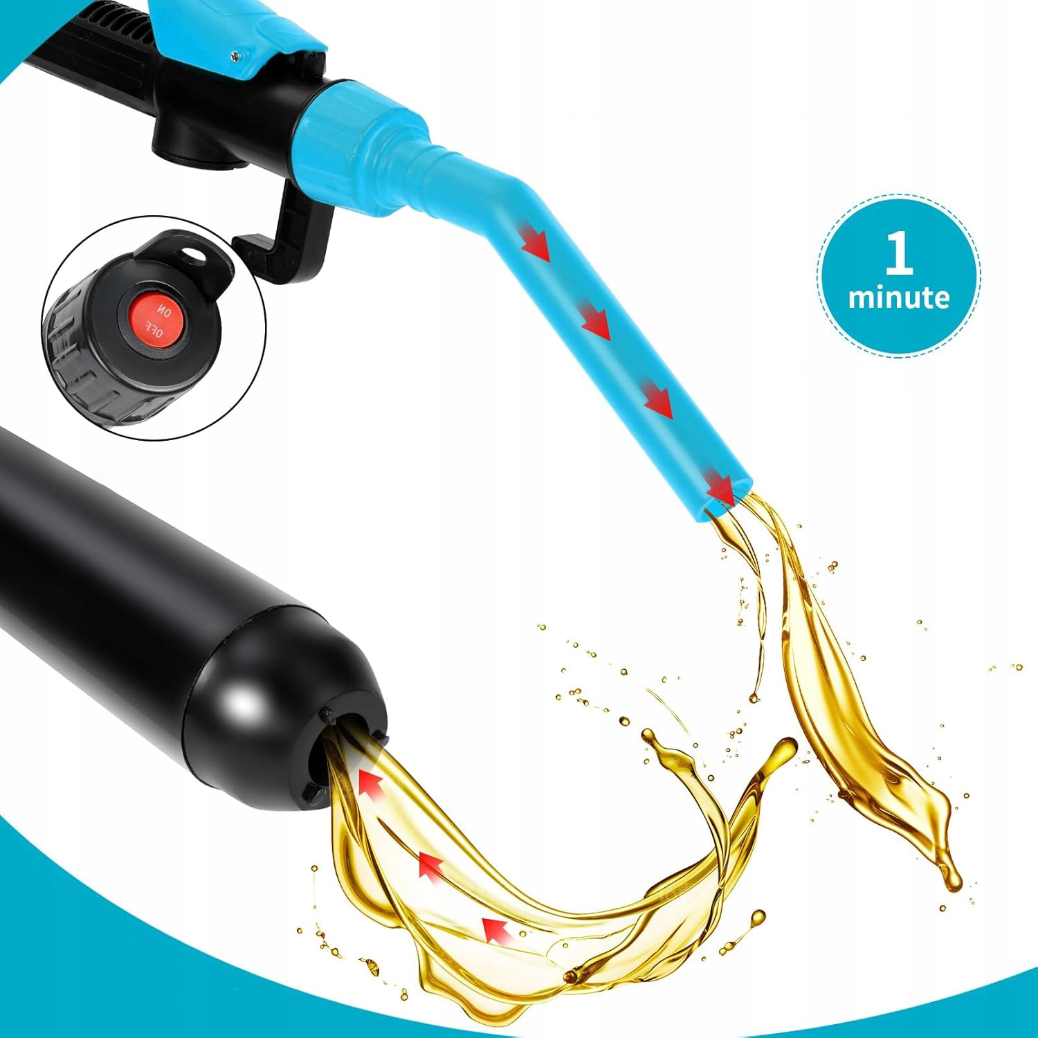 ➡️Он очень прост в использовании, просто погрузите один конец насоса в жидкость, вставьте выпускную трубку в емкость и нажмите кнопку сверху насос.