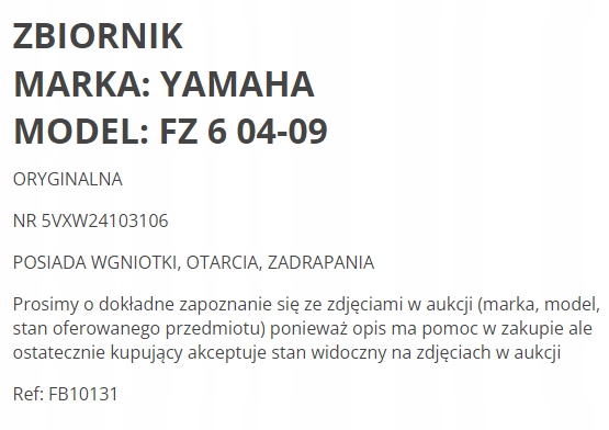 ПАЛИВНИЙ БАК YAMAHA FZ 600 FZ6 04-09